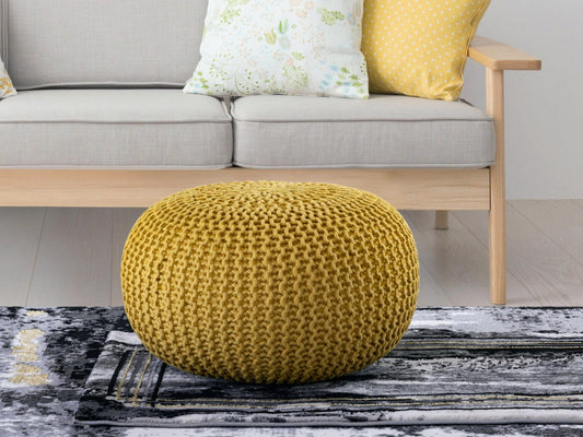 Puf/strikpuf grovstrik Ø45x30cm gul