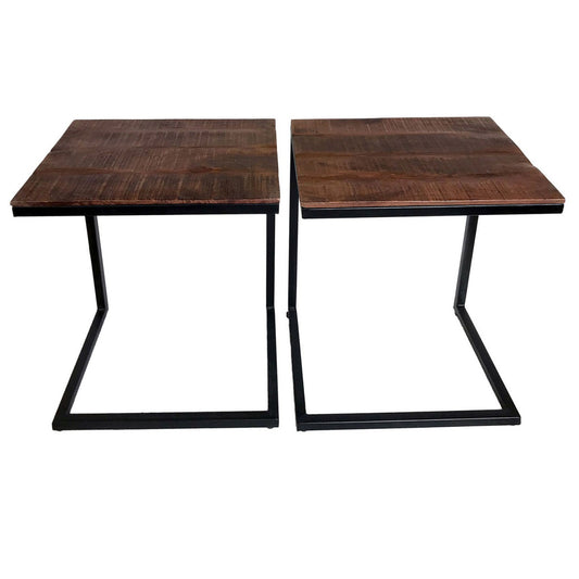 Sidebord i træ og metal, sæt med 2 stk. sort