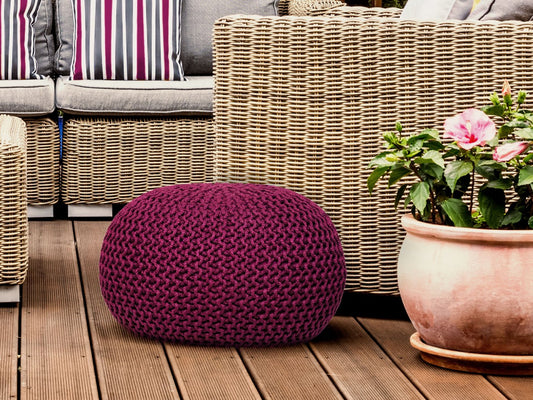 Puf/strikpuf grovstrik Ø55x37cm lilla
