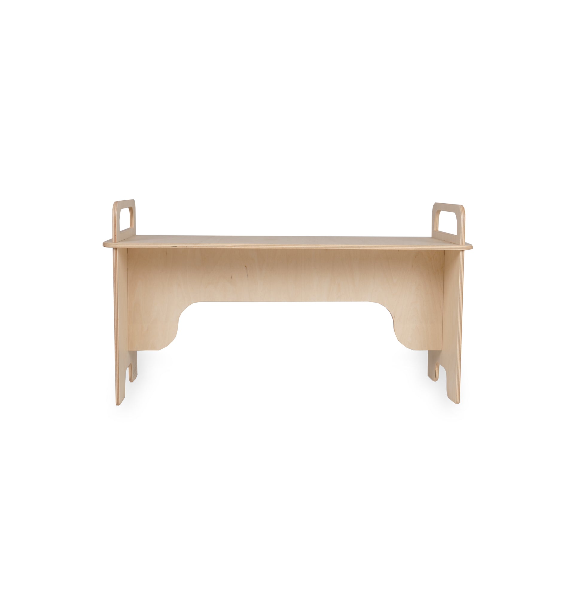 Bænk, der kan bruges sammen med Budapest eller Brussel bordet, men som også er fin at stille i stuen. Hurtig og enkel montering uden skruer, lavet af FSC-certificeret træ med lakeret finish. Naturfarve.