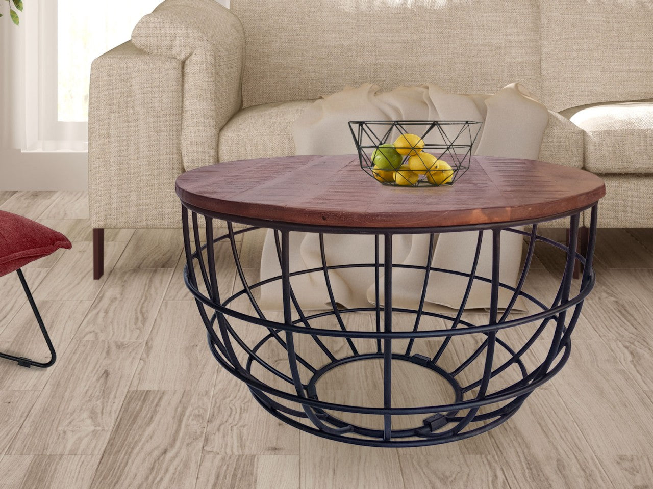 Det runde Lexington sofabord er et markant og stilfuldt valg til stuen. Bordet kombinerer en massiv bordplade i genanvendt mangotræ med et dekorativt metal-gitterstel, som giver et let, men råt industrielt udtryk. Det runde design skaber balance i indretningen og passer perfekt til både moderne, nordiske og industrielle hjem.
